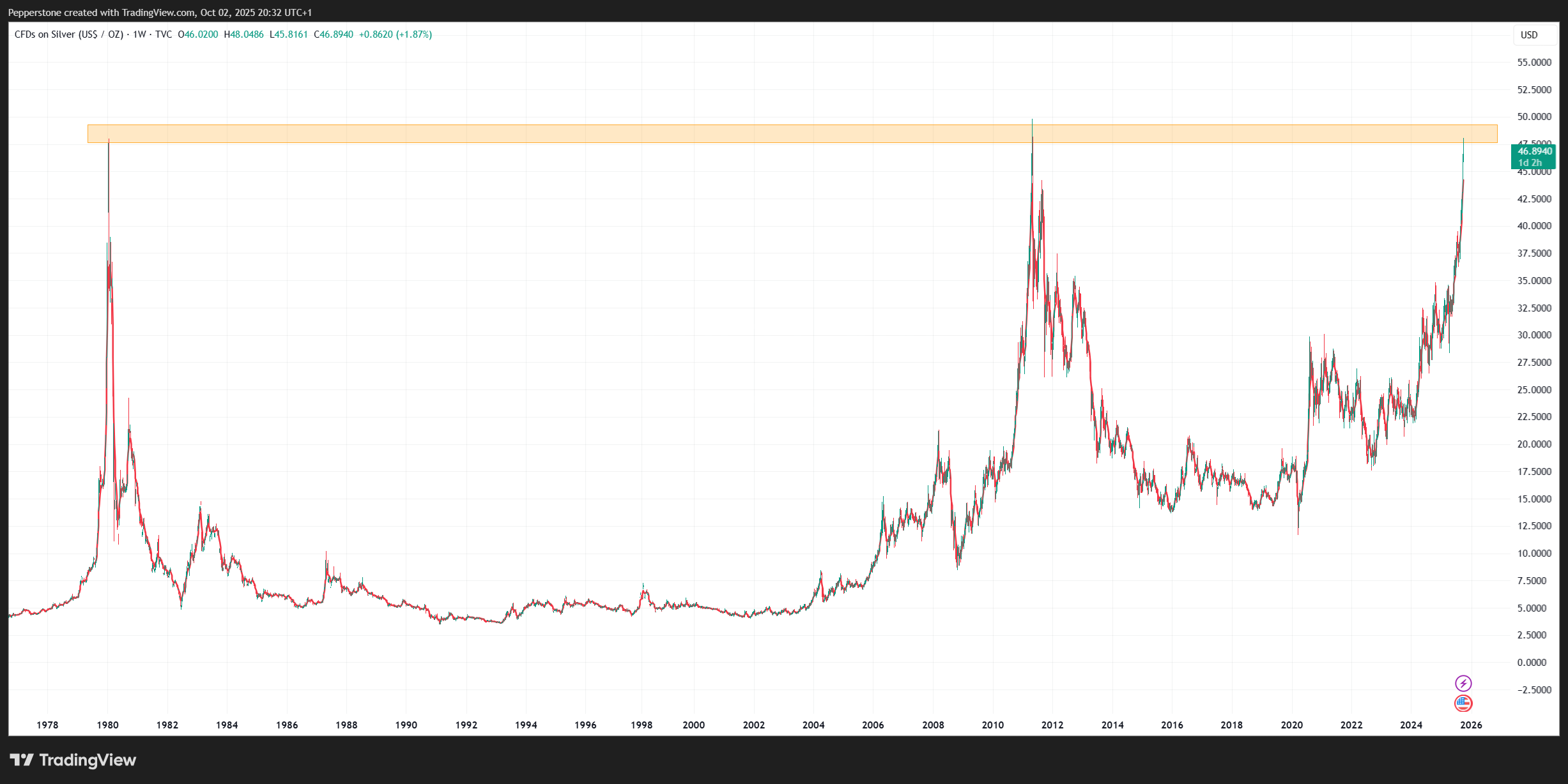 الذهب واصل اندفاعه الصاعد ليسجل 3855 دولار للأونصة بعد أن لامس مستويات قريبة من 3900 ، مدعوما بتوقعات الفيدرالي بمزيد من التيسير، وعمليات شراء متواصلة من البنوك المركزية. المعدن الأصفر الاداه الأبرز في بيئة تتسم بعدم اليقين السياسي وتقييمات الأسهم المرتفعة. الفضة بدورها لحقت بالموجة ، لتصل إلى 47 دولار، وهو أعلى مستوى لها منذ عام 2011 ، مستفيدة من الطلب الاستثماري وهذا الصعود المزدوج يعكس انتقال الاهتمام نحو الأصول الملموسة لتحوط المحافظ من تقلبات الأسواق الكلية.