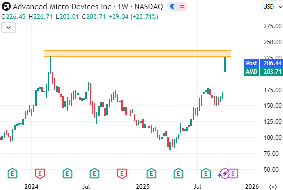 الصفقة تعزز مكانة AMD كمنافس رئيسي وباقي في سباق الرقائق ، وتمنح OpenAI مرونة أكبر في تنويع سلاسل التوريد وتوسيع قدراتها الحوسبية حيث ان القيقا وات الواحد يساوي ما يقارب استهلاك مليون منزل من الكهرباء والصفقة تشكل 6 اضعاف ذلك. وبذلك يبدو ان التفاعل مبرر ولو كانت النسبة كبيرة في مكتسبات الجلسة ولو ان AMD لا تزال اقل من قمتها المسجلة في مارس 2024.