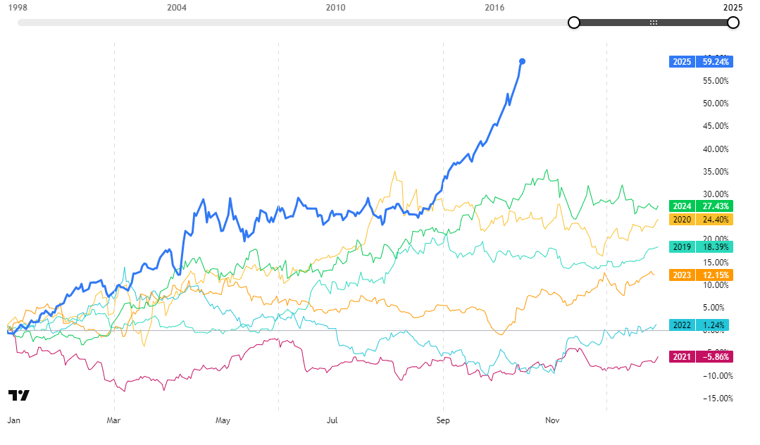 أما في أسواق السلع ، فكانت الأنظار موجهة نحو الذهب الذي واصل تألقه الاستثنائي وارتفع إلى 4235 دولاراً للأونصة بعد أن اخترق مستوى 4200 دولار واستمرار زخم في التعاملات المبكرة اليوم. هذا الارتفاع القوي يؤكد أن الذهب يعيش واحدة من أكثر مراحل الزخم استقرارا منذ أعوام طويلة ، مدعوم بمزيج من ضعف الدولار وتوقعات بخفض الفائدة. منذ شهر ارتفع المعدن الأصفر بنحو 15% تقريباً مع تصحيحات طفيفة لم تتجاوز 2% ، مما يدل على وجود طلب قوي وتدفقات شرائية من المستثمرين الأفراد والمنظمات على حد سواء. أصبح الذهب اليوم أحد الأركان الأساسية في المحافظ الاستثمارية الكبرى خاصة مع تصاعد المخاوف من ارتفاع في تقييم الأسهم الأميركية وازدياد الحديث عن احتمالية تشكّل فقاعة في بعض القطاعات ولو انني لا ارى ان ذلك دقيقاً ولكن العدد الكبير من المشاركين في الاسواق يناقشنون هذه الفكرة وهي ما بدورها تدعم الذهب كعامل ارض واقع. ومع توجه الأسعار الى مستويات اعلى ربما الى مستوى 4300 دولار ، فإن احتمالية حدوث جني أرباح مؤقت تبدو قائمة وصحية ، ولكن الاتجاه الصاعد ما زال مسيطر بقوة.