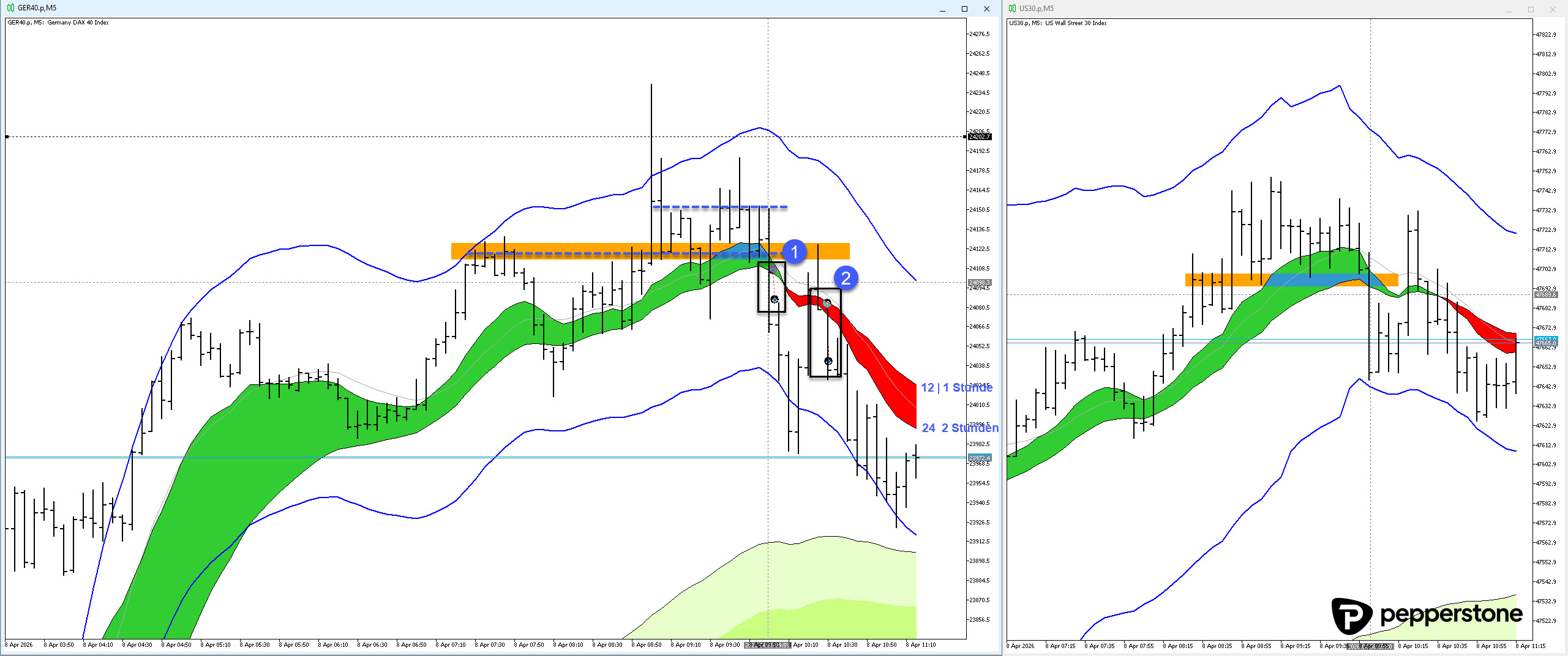 DAX Aktuell und Prognose: Rund anderthalb Stunden vor Ablauf des Ultimatums, das Donald Trump dem Iran gesetzt hatte, kam es dann doch zu einer Einwilligung; unter Einbindung unter anderem von Pakistan wurde eine zweiwöchige Waffenpause vereinbart. Das hat die Risikopreise sofort neu sortiert: Rohöl ist deutlich gefallen und die Aktienindizes haben sprunghaft positiv reagiert. Der DAX eröffnete entsprechend mit einem sehr starken Upgap, übersprang die erste Widerstandsmarke und lief damit automatisch in die zweite hinein. Genau daran sieht man, wie wertvoll es ist, auch beim Überspringen von Levels die „nächste Station“ bereits definiert zu haben – denn der Markt entscheidet nicht, ob es bequem ist, sondern ob es schnell geht.