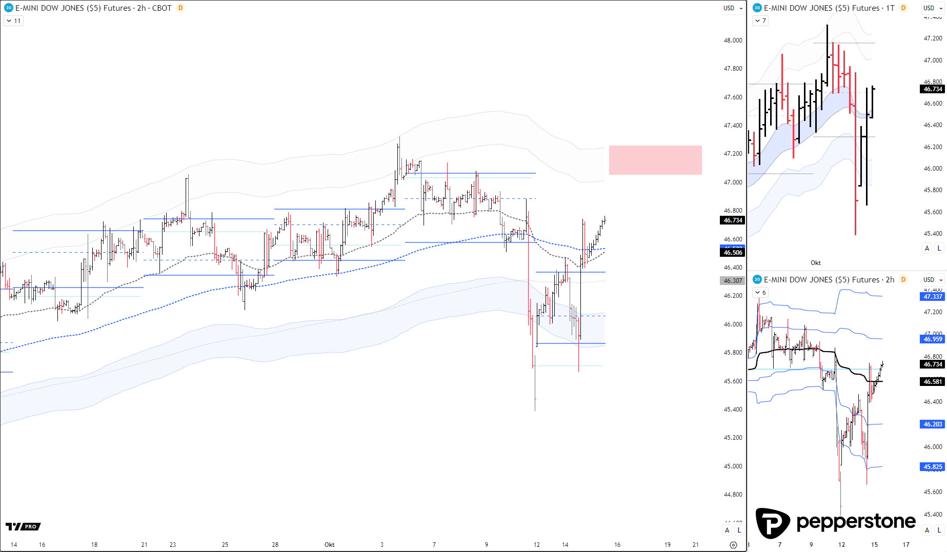 DOW JONES PROGNOSE: Von der Richtung eher seitwärts momentan. Höhere Kurse (oberhalb der Value Area) wären interessant für Shortpositionen. Ansonsten halte ich mich gegenwärtig eher an der Seitenlinie auf. Kurzfristige Signale im M10-Chart sind davon ausgenommen.