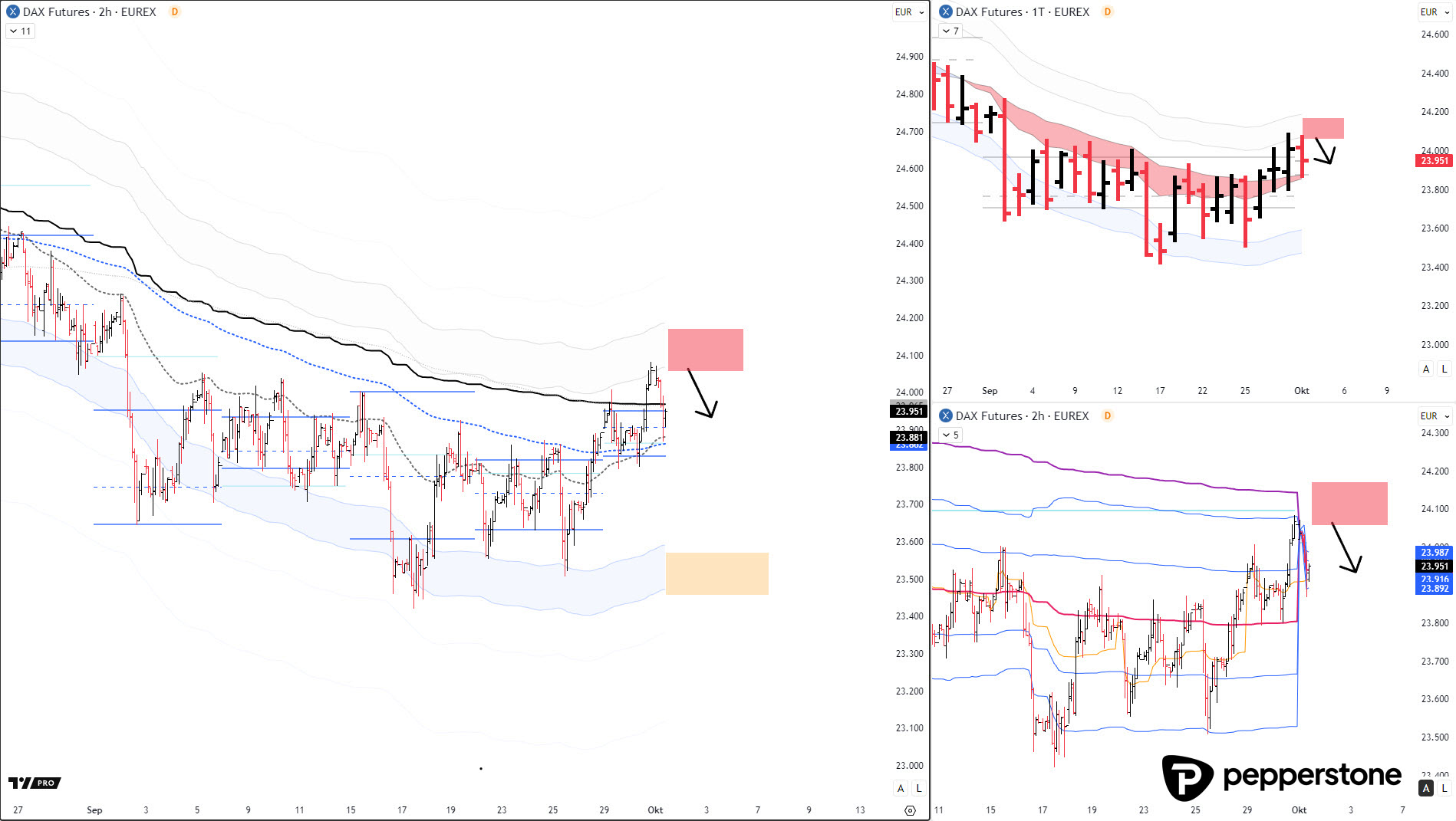 DAX PROGNOSE: Der DAX hat die letzten Shortzone bei 24.100 Punkten erreicht und daran planbar reagiert. Damit sind alle Shortzonen abgearbeitet. Die Handelsausrichtung bewegt sich zunehmend von fallend auf mindestens seitwärts. Somit bleibe ich vorerst an der Seitenlinie bis sich die Handelsrichtung fest etabliert,