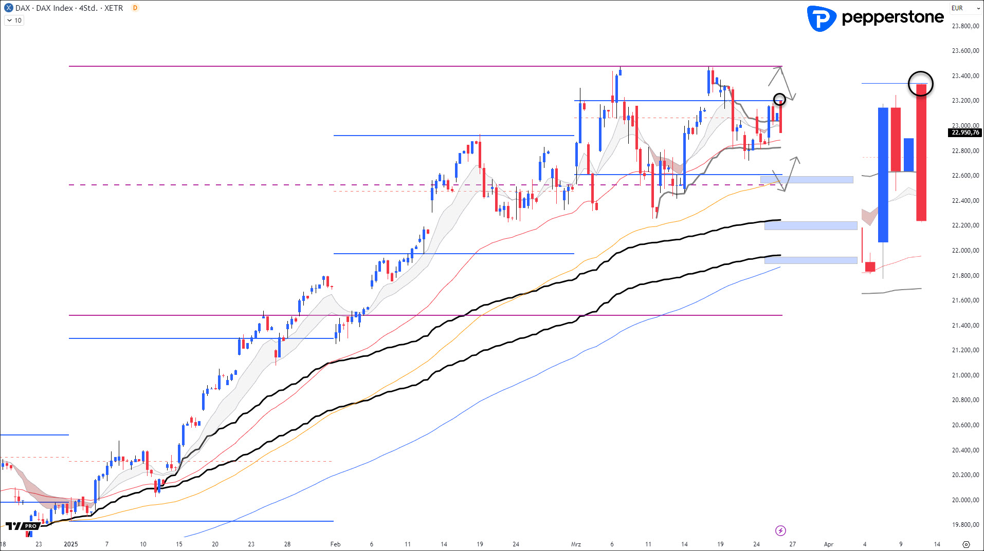 Diese Inhalte stellen keine unabhängige Finanzanalyse dar, sondern gehören zu unserer Werbemitteilung. Folglich sind die gesetzlichen und regulatorischen Bestimmungen, die sich auf unabhängige Finanzanalysen beziehen, nicht auf diese Website und unsere Kommunikation anwendbar. Diese Inhalte (unabhängig davon, ob sie Meinungen wiedergeben oder nicht) dienen nur der allgemeinen Information und berücksichtigen Ihre persönlichen Umstände oder Ziele nicht. Die Inhalte unserer Webseite und unserer Kommunikation sind nicht als Finanzberatung, Anlageberatung oder andere verlässliche Beratung gedacht und dürfen auch nicht als solche betrachtet werden. Keine auf der Website wiedergegebene Meinung stellt eine Empfehlung seitens Pepperstone oder seitens des Autors dar, nach der eine bestimmte Anlage, Transaktion oder Anlagestrategie oder ein bestimmtes Wertpapier für eine bestimmte Person geeignet wäre.