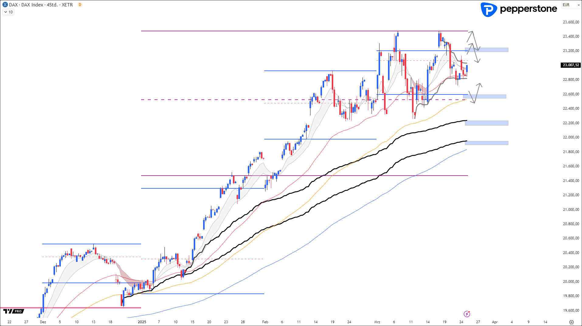 Diese Inhalte stellen keine unabhängige Finanzanalyse dar, sondern gehören zu unserer Werbemitteilung. Folglich sind die gesetzlichen und regulatorischen Bestimmungen, die sich auf unabhängige Finanzanalysen beziehen, nicht auf diese Website und unsere Kommunikation anwendbar. Diese Inhalte (unabhängig davon, ob sie Meinungen wiedergeben oder nicht) dienen nur der allgemeinen Information und berücksichtigen Ihre persönlichen Umstände oder Ziele nicht. Die Inhalte unserer Webseite und unserer Kommunikation sind nicht als Finanzberatung, Anlageberatung oder andere verlässliche Beratung gedacht und dürfen auch nicht als solche betrachtet werden. Keine auf der Website wiedergegebene Meinung stellt eine Empfehlung seitens Pepperstone oder seitens des Autors dar, nach der eine bestimmte Anlage, Transaktion oder Anlagestrategie oder ein bestimmtes Wertpapier für eine bestimmte Person geeignet wäre.