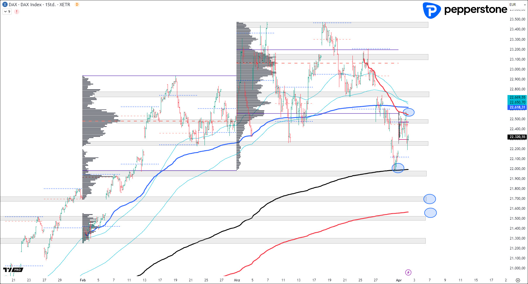 Auch heute konnte der DAX sich an den Fahrplan halten und reagiert mit über 400 Punkten planbar an der Anchored VWAP (Volumendurchschnitt). Weitere Handelszonen sind wie gewohnt eingezeichnet.