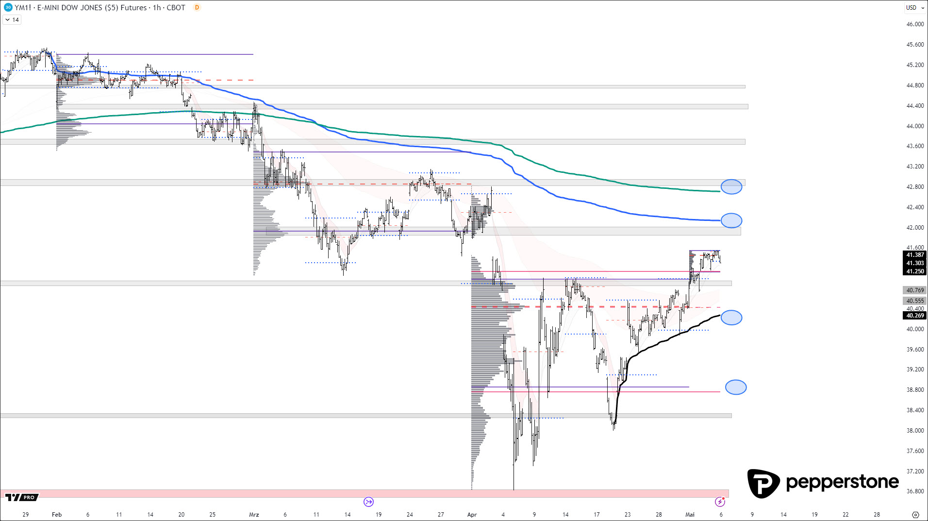 DOW JONES PROGNOSE: Der Dow Jones befindet sich außerhalb der Value Area, Rücksetzer könnten jetzt schon eintreten. Ich warte auf die eingezeichneten Zonen.