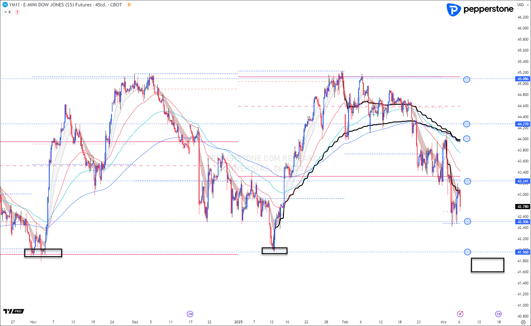 Wichtige Unterstützungen: 42.480 Punkte | 41.960 Punkte