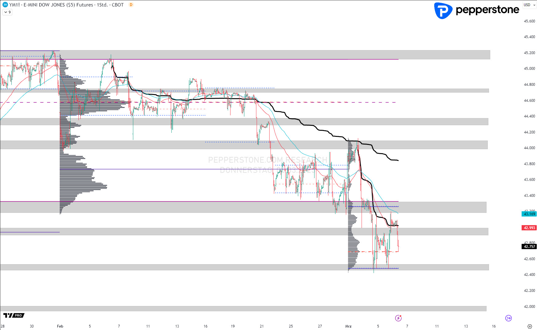 Wichtige Widerstände: 43.240 Punkte | 43.950-44.0000 Punkte | 44.270 Punkte