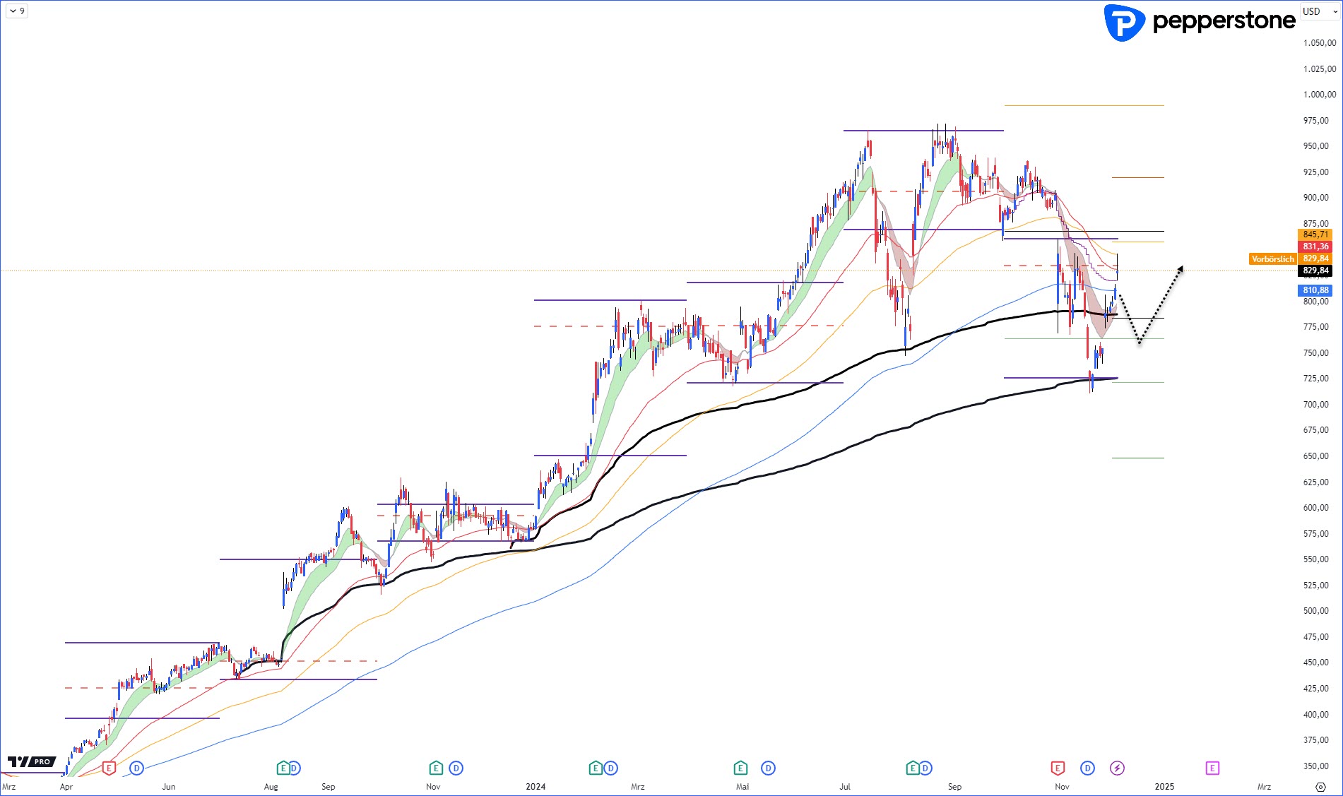 Die Aktie von ELI LILLY korrigierte im Zuge des Wahlsieges von Donald Trump ziemlich deutlich, zeigt aber nun langsam erste Stabilisierungstendenzen. Gerade jetzt ergeben sich damit für frühe Reversalhändler interessante Chancen.