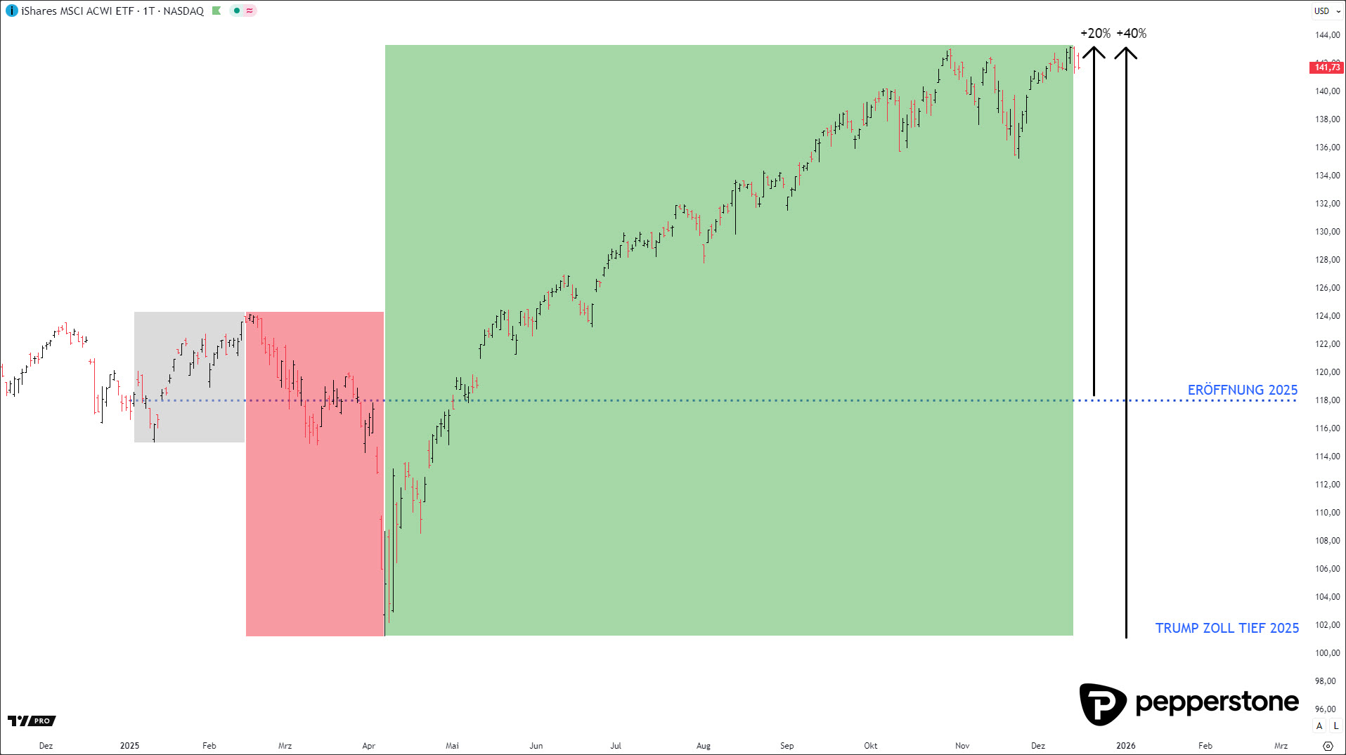Vom Jahrestief bis zum Hoch summierte sich die Bewegung auf rund 41 Prozent, während der Index auf Jahresbasis bei etwa 22 Prozent liegt und damit deutlich über seinem historischen Durchschnitt von rund 16 bis 18 Prozent. Diese starke Performance erklärt, warum viele Anleger aktuell von einem neuen, stabilen Aufwärtstrend ausgehen. Gleichzeitig ist genau diese Überperformance der Ausgangspunkt für eine kritischere Einordnung des weiteren Verlaufs.