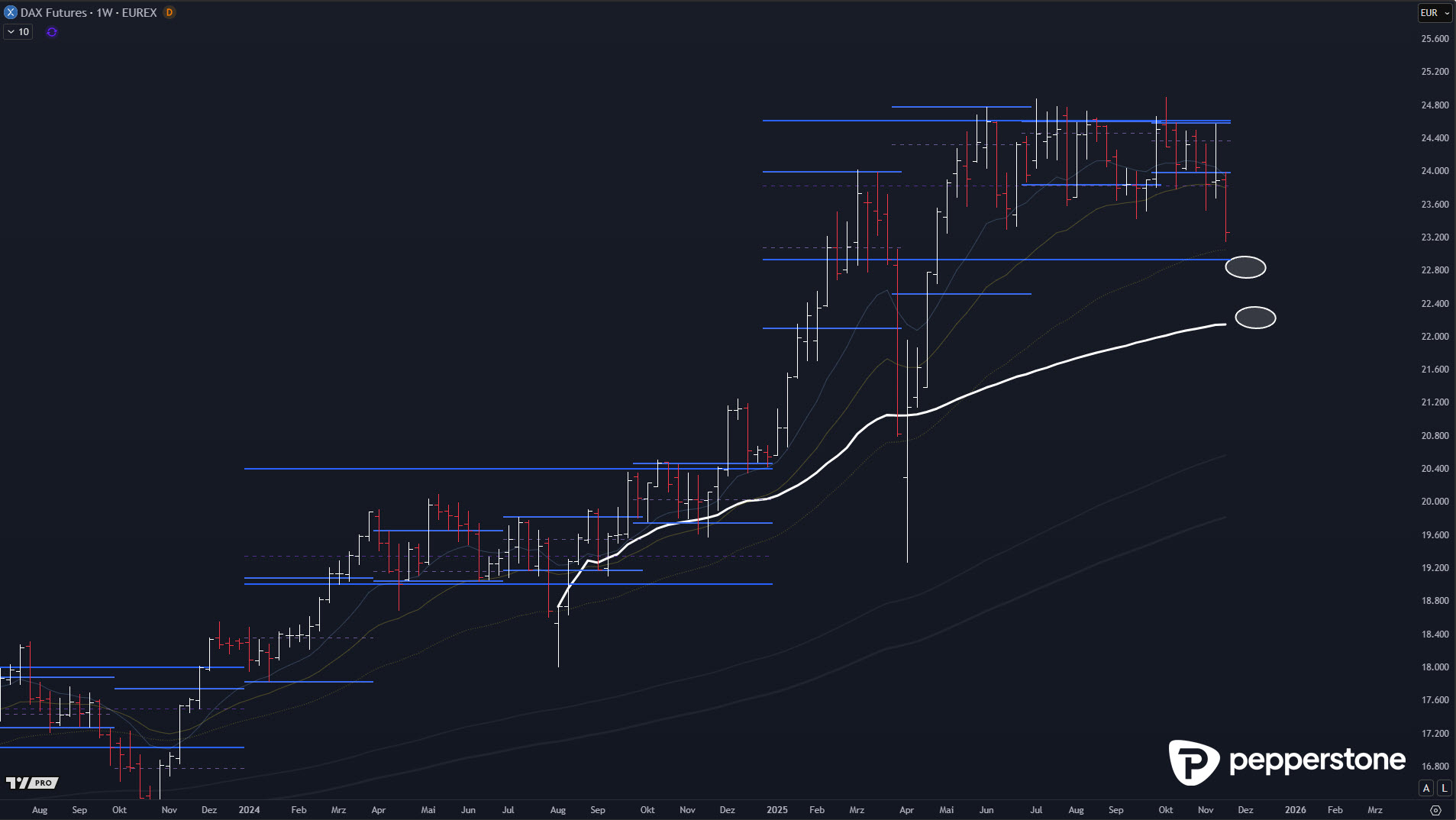 Europa und Deutschland befinden sich in einer Marktphase, die durch Überdehnung, beginnende Korrekturen und klar definierte Gleichgewichtsbereiche geprägt ist. Wer den Kontext beherrscht, erkennt sowohl die Gefahren prozyklischer Trades als auch die Chancen taktisch sauberer Reversals.