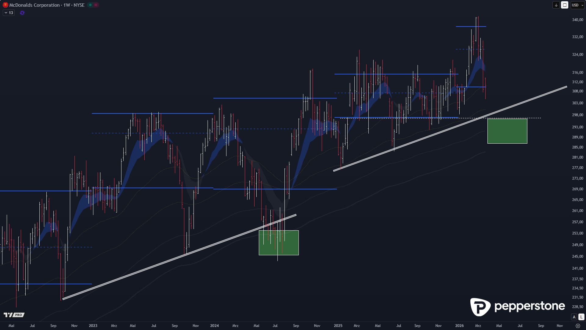 McDonald’s ist fundamental das, was Dividendenanleger suchen: Kontinuität, Planbarkeit und ein langfristig stabiles Kursprofil. Der aktuelle Punkt ist jedoch technisch: Trapped Buyers am Hoch sprechen eher für weitere Normalisierung, bevor der nächste Impuls entsteht. Wer strukturiert vorgeht, legt den Fokus auf die Value-Logik und die Unterstützungscluster 295–315 USD sowie 297–283 USD (bzw. 300–280 USD als breitere Zone). Meiner Meinung nach entsteht der beste Trade hier nicht durch „Hinterherkaufen“, sondern durch Geduld bis zur Zone und Bestätigung durch Stabilisierung.