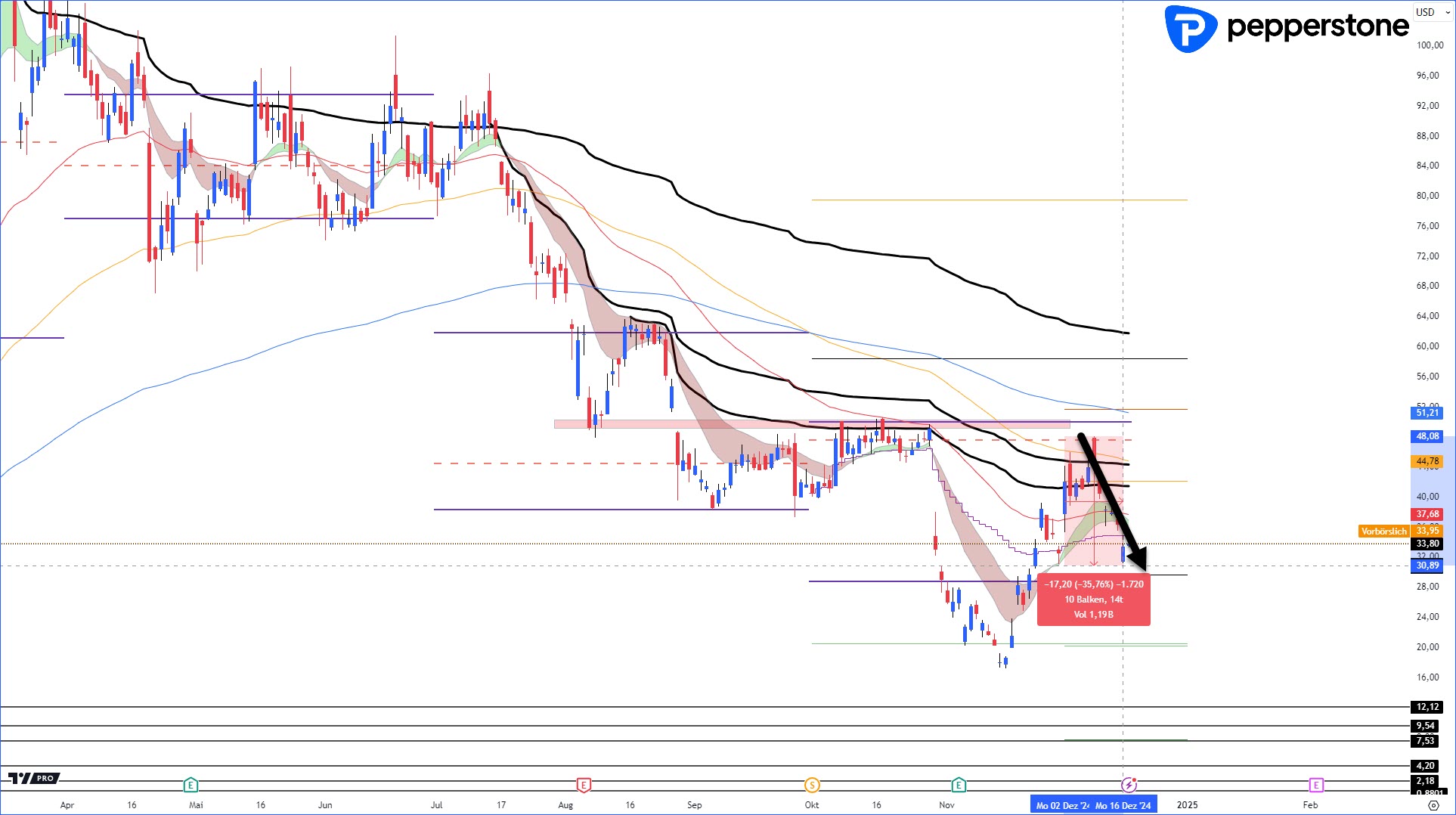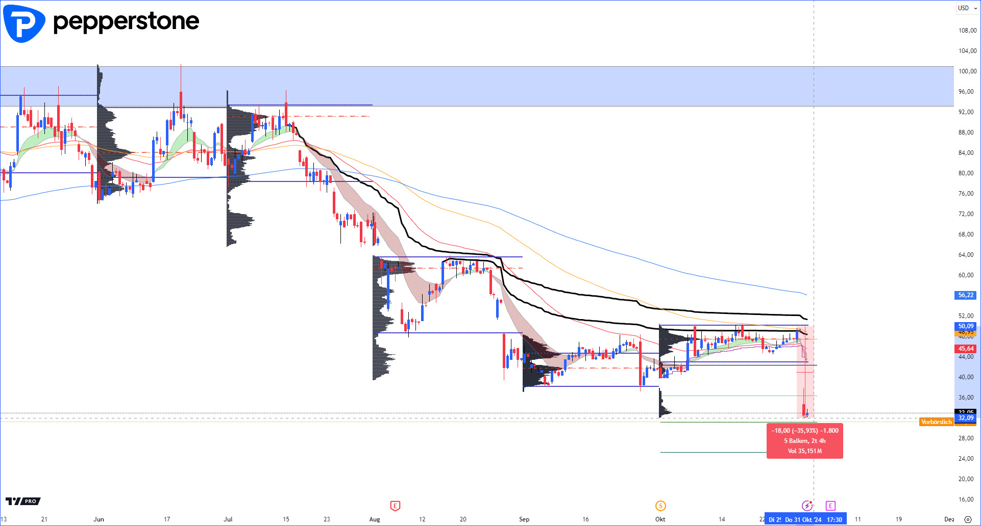 Wenn extreme Nachrichten, Angst und technische Entwicklungen gleichzeitig auftreten, ist das meist ein toxischer Mix, der die Aktie zügig in noch extremere Abverkäufe bringen kann.