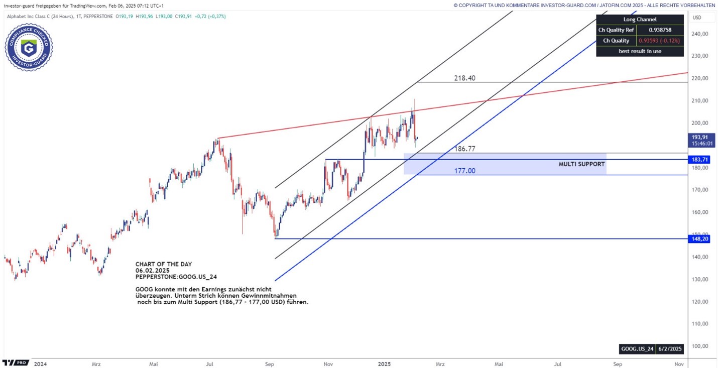 Im Chart of the Day prüfen wir heute den GOOG CFD. Die Tech Aktie hatte gestern after market close (AMC) ihr Zahlenwerk vorgelegt und wurde prompt abverkauft. Für mich sind dies normale Gewinnmitnahmen nach dem jüngsten Rekordhoch. Achten Sie auf die Unterstützung um 180 USD. Suchen Sie nach klaren und belastbaren Setups.