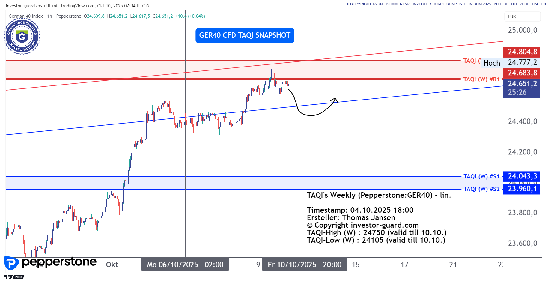 Gold sah ein Reversal. Hier laufen erste Gewinnmitnahmen nach der wahnwitzigen Rally der letzten Tage. Der Bitcoin trat oberhalb von 120.000 US-Dollar auf der Stelle. Noch ist der Rücksetzer beim BTCUSD konstruktiv zu werten.