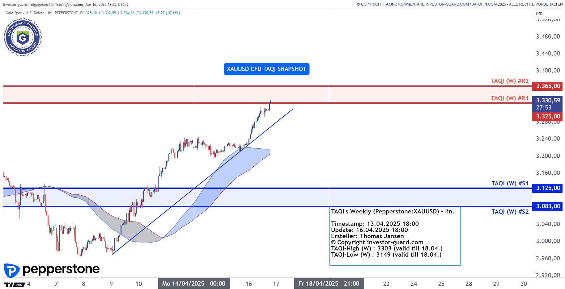XAUUSD (Gold Spot) klettert aufwärts und testet meinen TAQI-Resist. In dieser Widerstandszone hat das gelbe Edelmetall allerdings zwei Hochpunkte ausgebildet, die durchaus Verkaufsdruck triggern könnten. Achten Sie daher auf der Unterseite auf 4.163 US-Dollar. Wenn diese Marke nicht hält, sind weitere Kursverluste und ein Abdriften in meine Unterstützungszone denkbar. Alle übergeordneten Ansichten finden Sie im Artikel auf TradingView. Für die KW 50 plane ich mit einem zunächst ruhigen Handel. Auch hier wird es im Umfeld der FED-Sitzuung sicherlich sehr spannend.