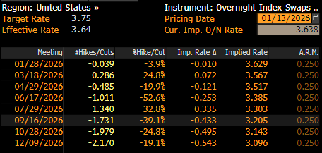 Overall, the policy implications of the December inflation report, at least in the market’s mind, are relatively limited. Per the USD OIS curve, markets continue to imply just a 3% chance of a 25bp cut this month, though the next 25bp cut is now fully discounted by June, vs. July pre-release, though this is of course after the next Fed Chair will have taken office.