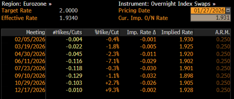 As noted, the GC are set to hold all policy settings unchanged at the conclusion of the February policy meeting, maintaining the deposit rate at 2.00%, a level where it has stood since early last summer.