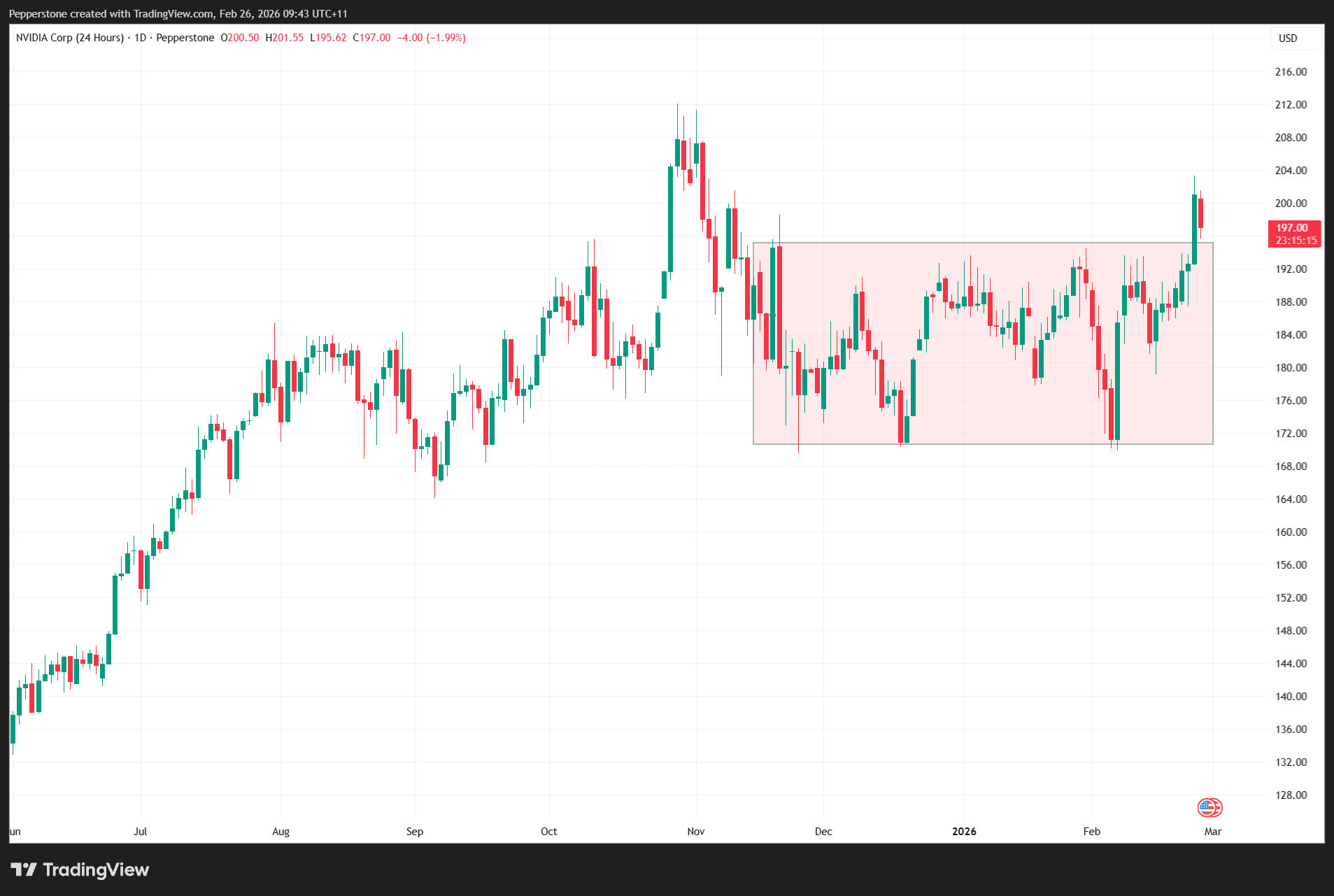 The next major catalyst will be NVIDIA’s GTC Developers Conference on 16 March, where investors will look for updates on the Rubin platform rollout and longer-term revenue outlook.