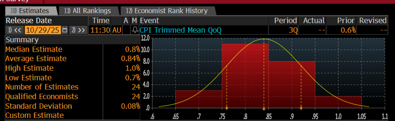 The RBA has made it clear that it places significant weight on the quarterly CPI print. With markets pricing a mild skew toward a November rate cut, the Q3 CPI data could decisively guide expectations for whether the RBA cuts or holds — and in doing so, set the tone for AUD, rates, and equity market performance into year-end.