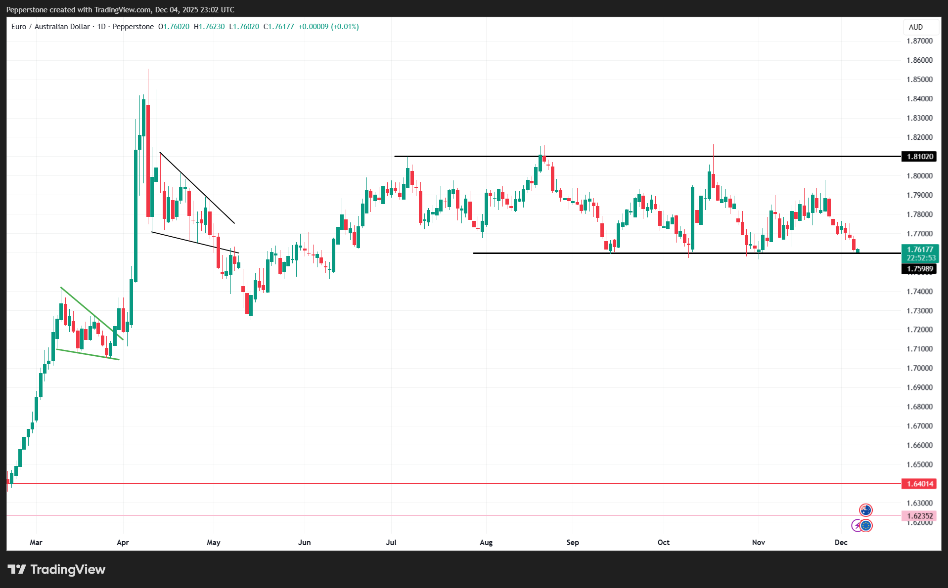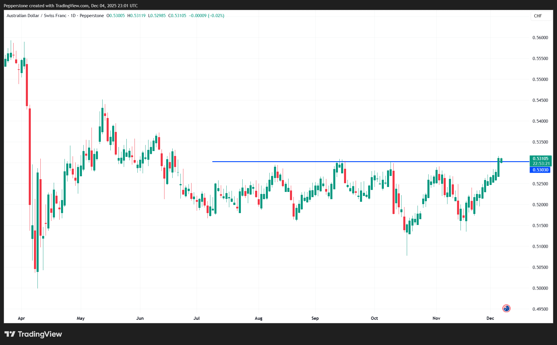 That said, markets move well ahead of central banks - and the AUD could continue rallying long before the RBA provides explicit confirmation. Multiple AUD pairs are already threatening breakouts, and momentum could accelerate into early 2026.
