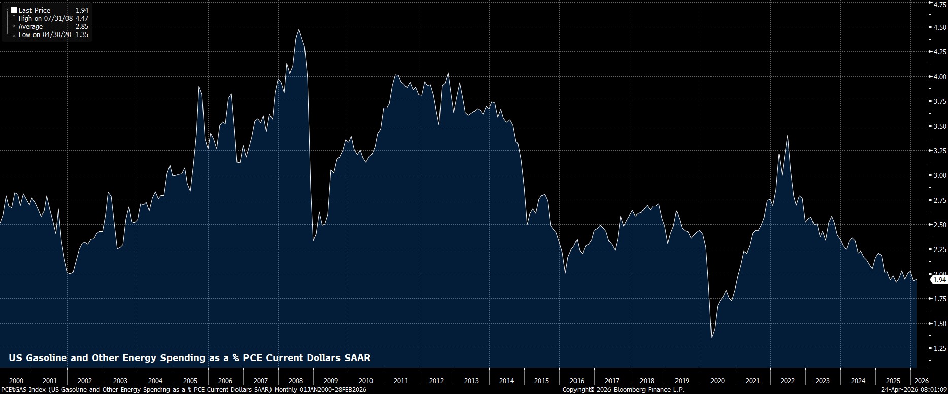 While there will, obviously, be a move higher in headline inflation on the back of higher energy costs, and some growth headwinds, the global economy, especially DMs, have moved to a considerably more diversified energy mix in recent years, while spending on energy as a proportion of overall consumption has also been in decline for some time. Added to which, fiscal policies are increasingly working to cushion against the impact of higher energy costs, amid various fuel subsidies and fuel tax tweaks here in Europe, along with tax refunds from last year’s OBBBA largely netting-off against higher energy spending stateside.