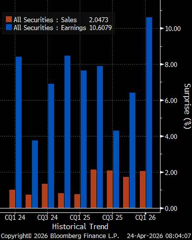 While, of course, earnings could come under pressure in coming months as the macroeconomic fallout of conflict in the Middle East becomes clear, though that is clearly not yet the case, and on the whole guidance has been relatively robust. Consequently, this is all helping to further underpin risk appetite.