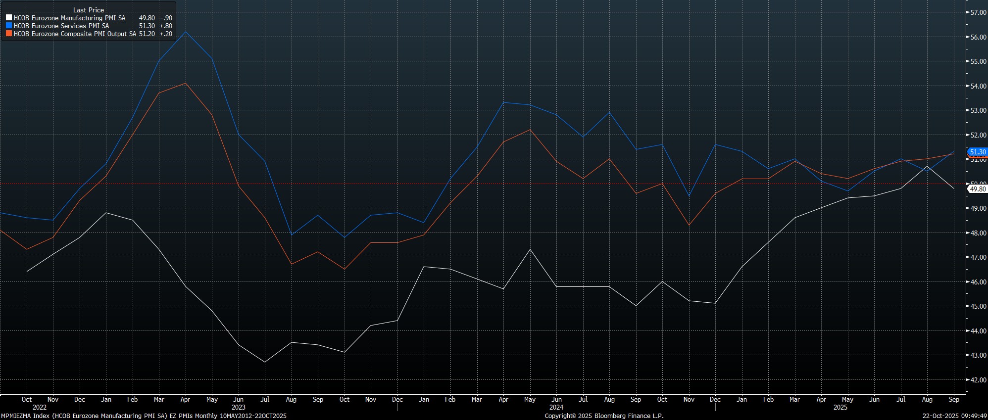 In any case, the most recent round of PMI surveys pointed to a continued recovery in the eurozone economy last month, most notably with the composite output metric rising to 51.2, a 16-month high.