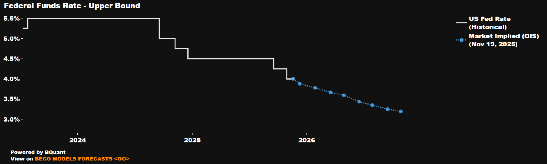 Numerous potential deadlines have already slipped – Powell was named Chair in early-November, before his term began the following February; while, Treasury Sec. Bessent’s prior remarks that a nomination would come prior to Thanksgiving now seem unlikely to ring true. Bessent’s latest deadline, that a name will be known before Christmas, could well suffer the same fate as the deadlines that have already slipped, even if President Trump claims he already knows who he will appoint to the job.