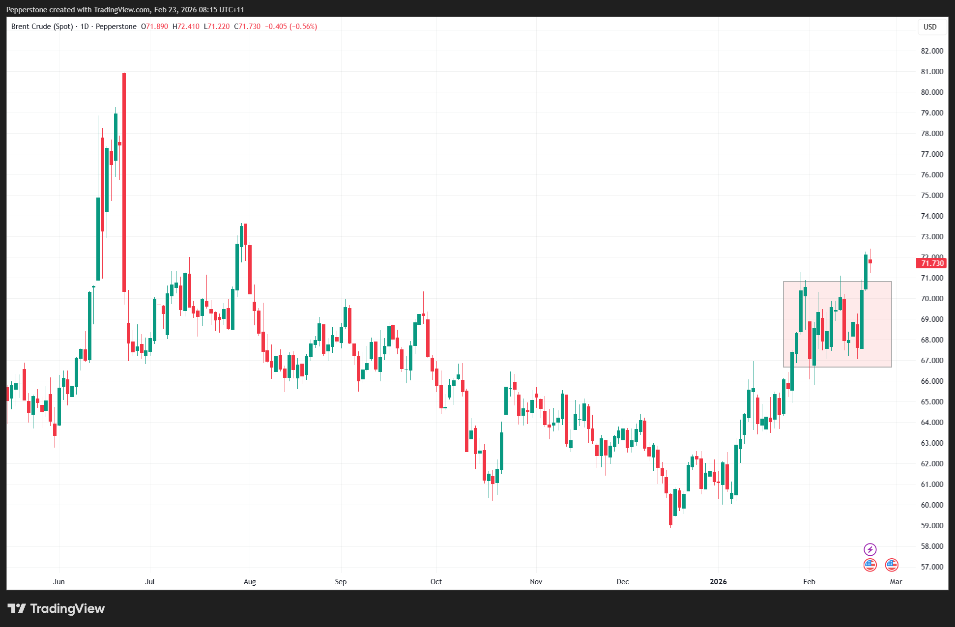 Geopolitical risk remains elevated. Increased U.S. military presence in the region has pushed crude oil prices toward $72 per barrel, reflecting a rising probability of military confrontation and potential supply disruption.