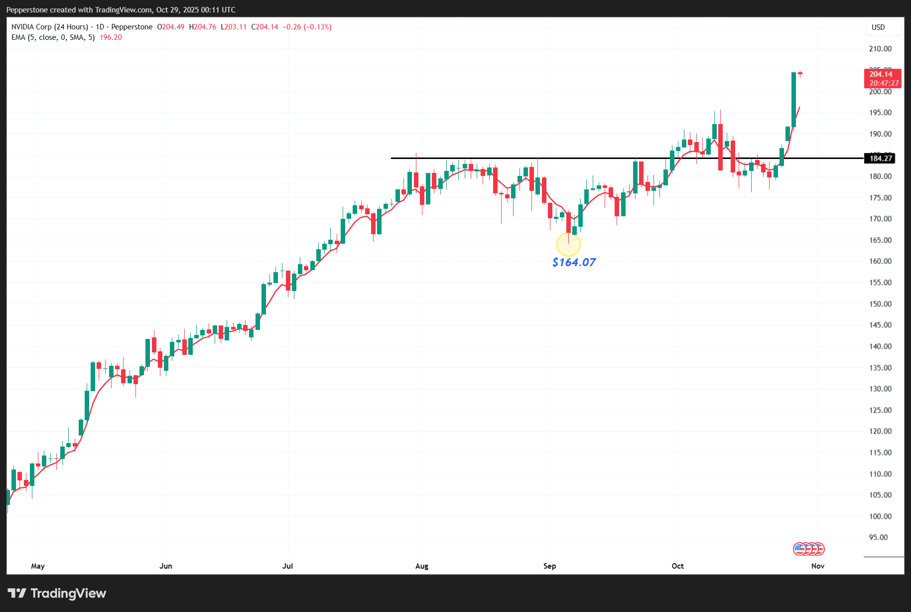 The question now is whether the market fully buys into Jensen Huang’s $500 billion sales projection, and if it prompts analysts to re-rate revenue expectations ahead of Nvidia’s 19 November earnings.