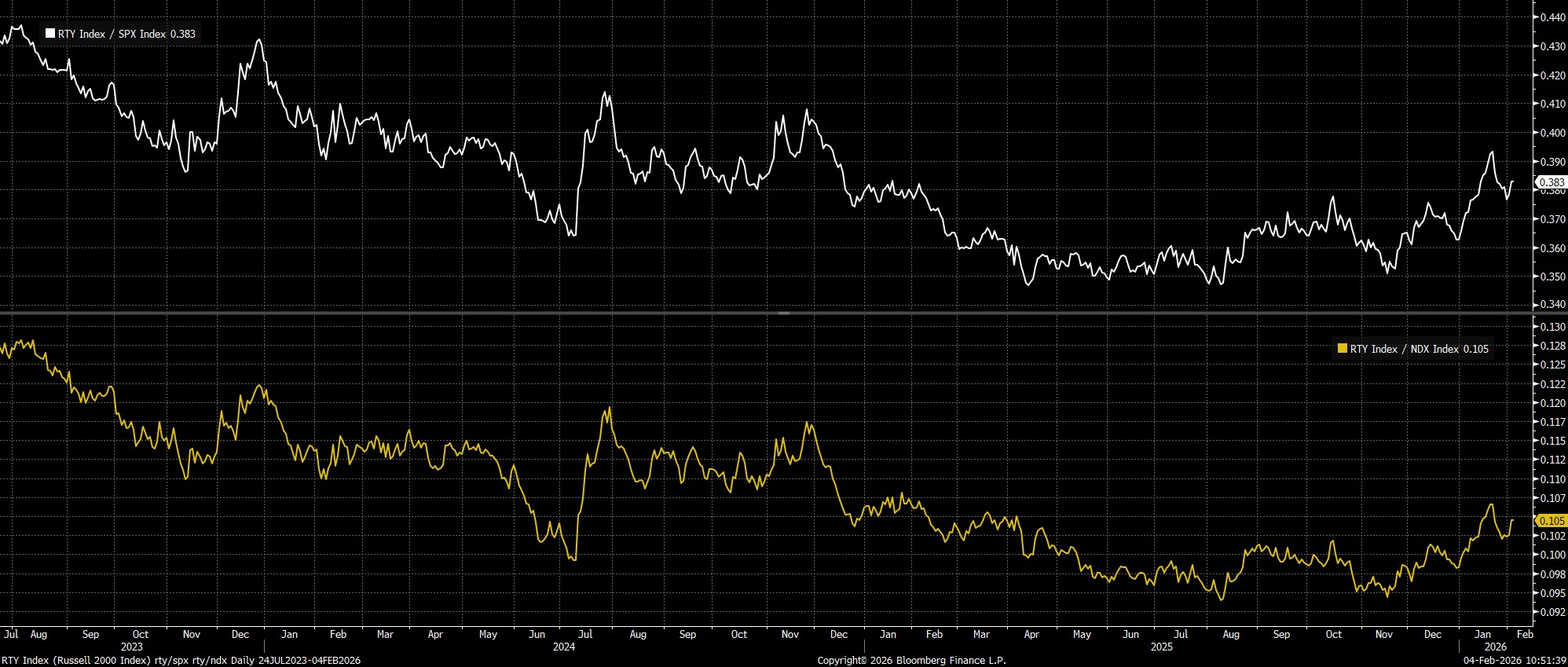 Meanwhile, small caps are continuing to outperform their larger cap peers, albeit not quite to the extent seen in mid-January. Still, the Russell 2000 remains just a rounding error away from its best performance relative to both the S&P and the Nasdaq since the second quarter of last year.