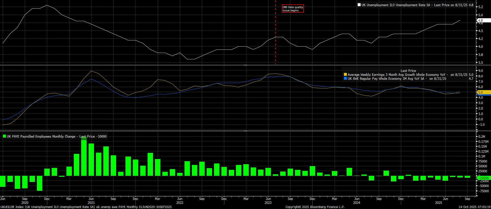 Headline unemployment, in the three months to August, ticked higher to 4.8%, the highest level since mid-2021, implying that a notable margin of slack persists, even if the data must continue to be taken with a pinch of salt