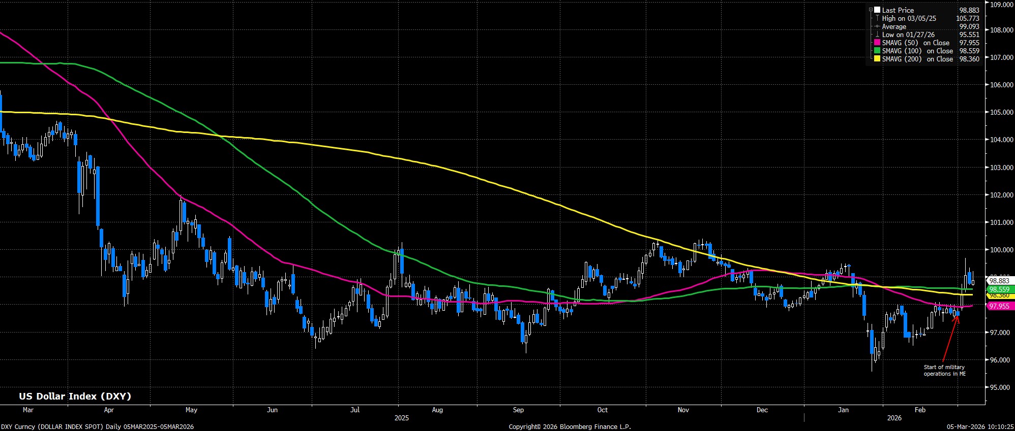 • Haven Demand: Conflict in the Middle East has led participants to seek a haven, with the dollar outperforming as a result