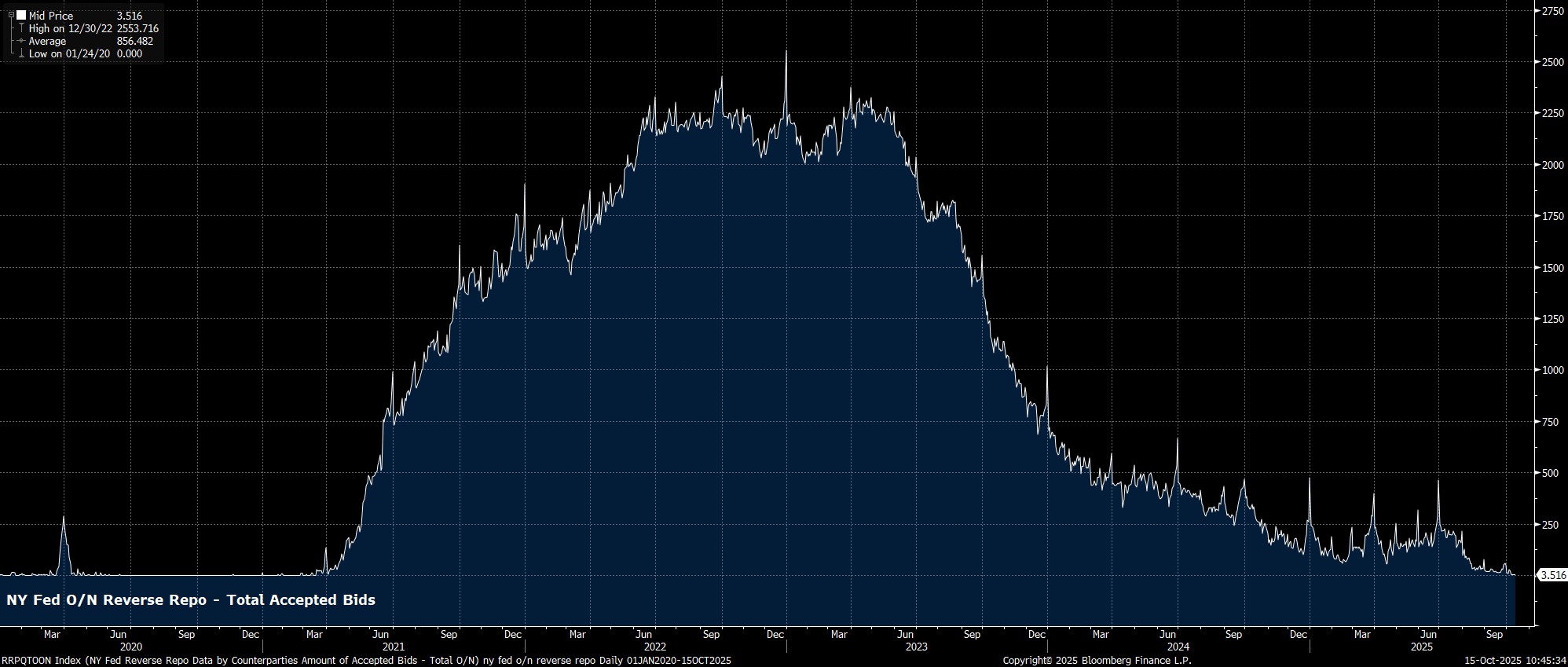 Of course, as the QT process continues, this has the effect of draining reserves from the financial system on a weekly basis.