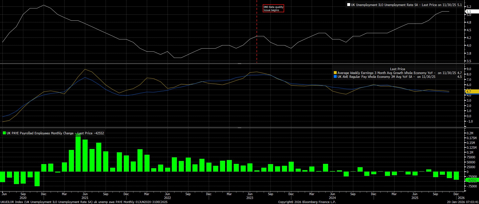 Headline unemployment, in the three months to November, held steady at 5.1%, unchanged from the pace seen in November, but still at its highest level since the start of 2021.