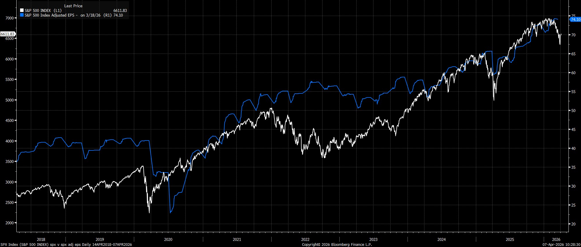 First things first, it’s important to remember that the earnings themselves that will be released through reporting season are already somewhat stale. The macroeconomic outlook has flipped almost totally on its head since the start of March, as a result of conflict having broken out in the Middle East, in turn triggering a surge in energy prices. Naturally, this will bring with it not only inflationary implications, but likely also a significant negative demand shock, particularly if higher energy prices prove more prolonged than expected.