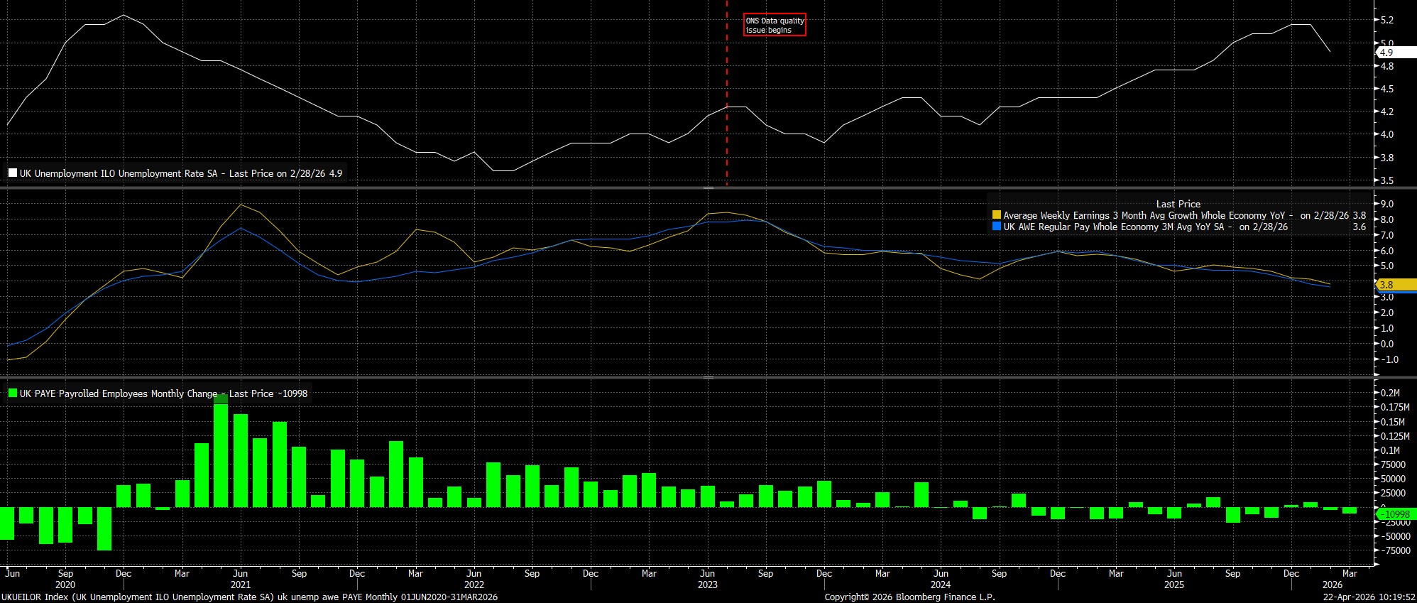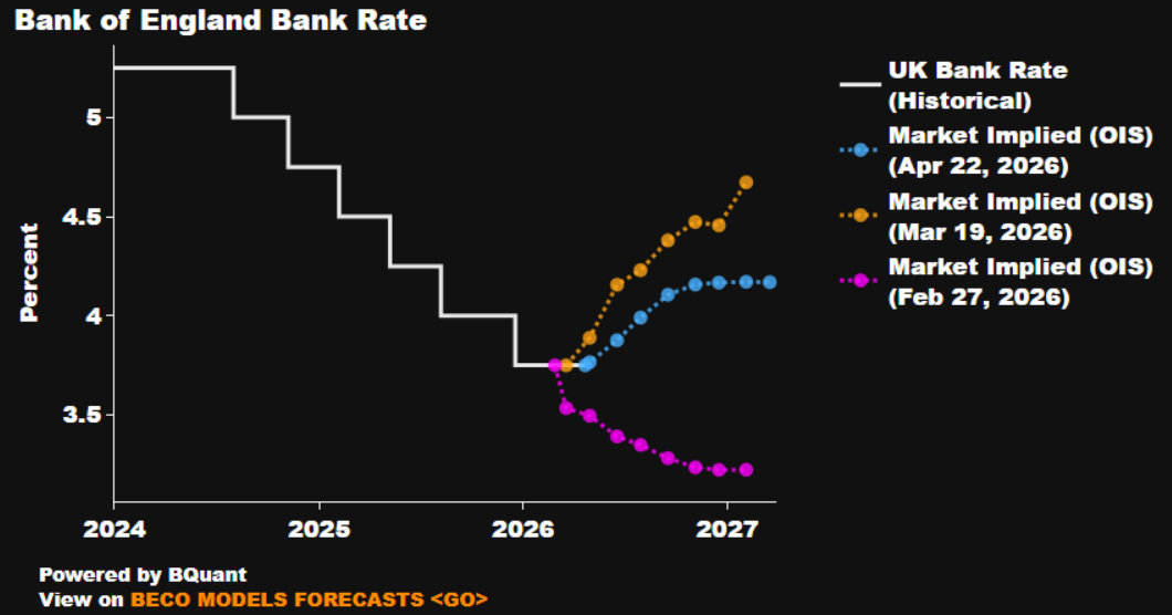 As noted, the MPC are set to stand pat at the April confab, holding Bank Rate steady at 3.75%, extending a pause which begun at the turn of the year, with policymakers having last delivered a 25bp cut at the final meeting of 2025.