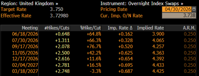 As expected, the Bank of England’s Monetary Policy Committee held all policy settings steady at the conclusion of the April confab, maintaining Bank Rate at 3.75%, a level at which it has stood since last December.