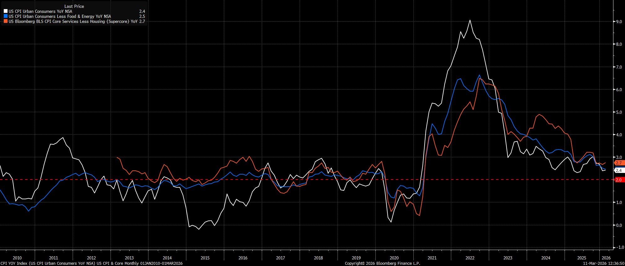 Headline CPI rose 2.4% YoY last month, bang in line with consensus expectations and unchanged from the pace seen in January. Meanwhile, underlying inflation metrics pointed to little change from last time out, with core CPI rising 2.5% YoY, and ‘supercore’ inflation (aka core services ex-housing) rising 2.7% YoY.
