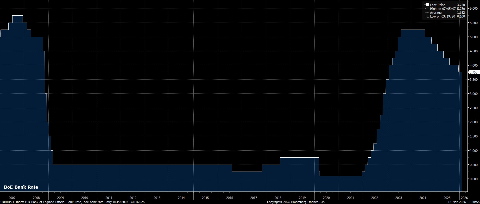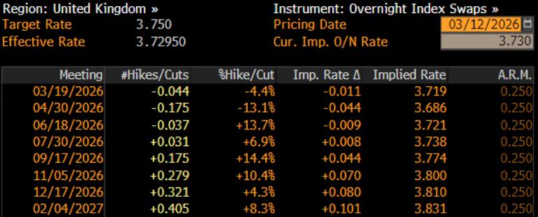 As noted, the MPC are likely to stand pat at the March confab, maintaining Bank Rate at 3.75%, having last delivered a 25bp cut at the December 2025 meeting.