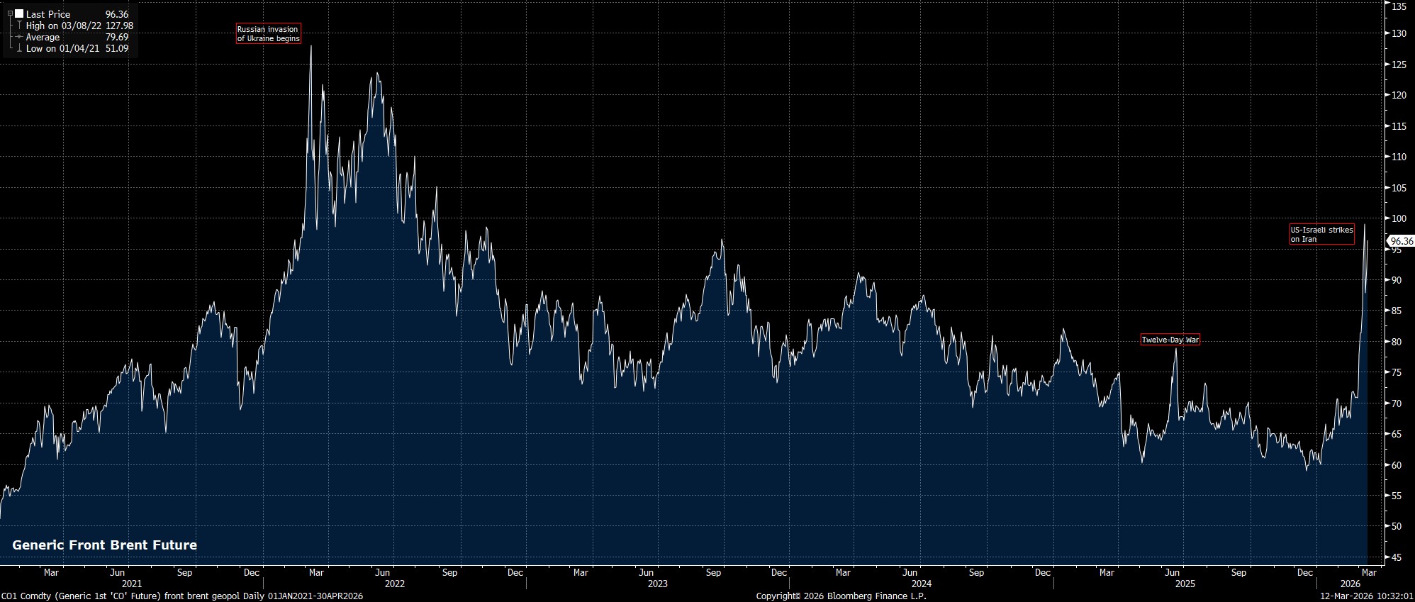 However, the entire outlook has since been upended by developments in the Middle East, with the effective impassability of the Strait of Hormuz causing significant disruptions to global commodity flows, subsequently causing prices to spike, with Brent crude having recently cleared the $100bbl mark. Crucially, the implications of this energy price shock on the wider economy depend almost entirely on the duration of the conflict, with there being little-to-no clarity on that front right now.