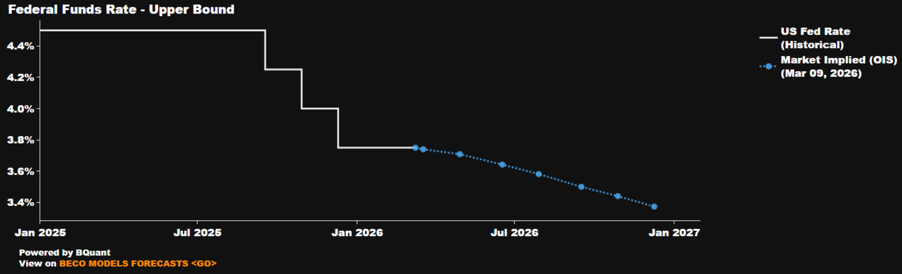 • Cuts Postponed Not Cancelled: Geopolitical uncertainty, and the ongoing energy shock, lead to cuts being postponed for now, though further easing, under Chair designate Warsh, is likely assuming disinflation resumes in H2 26