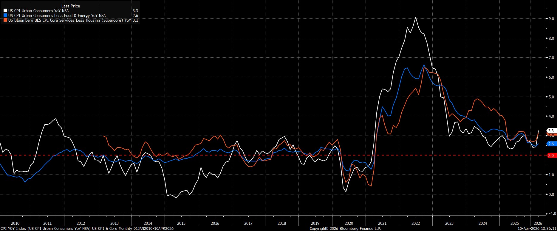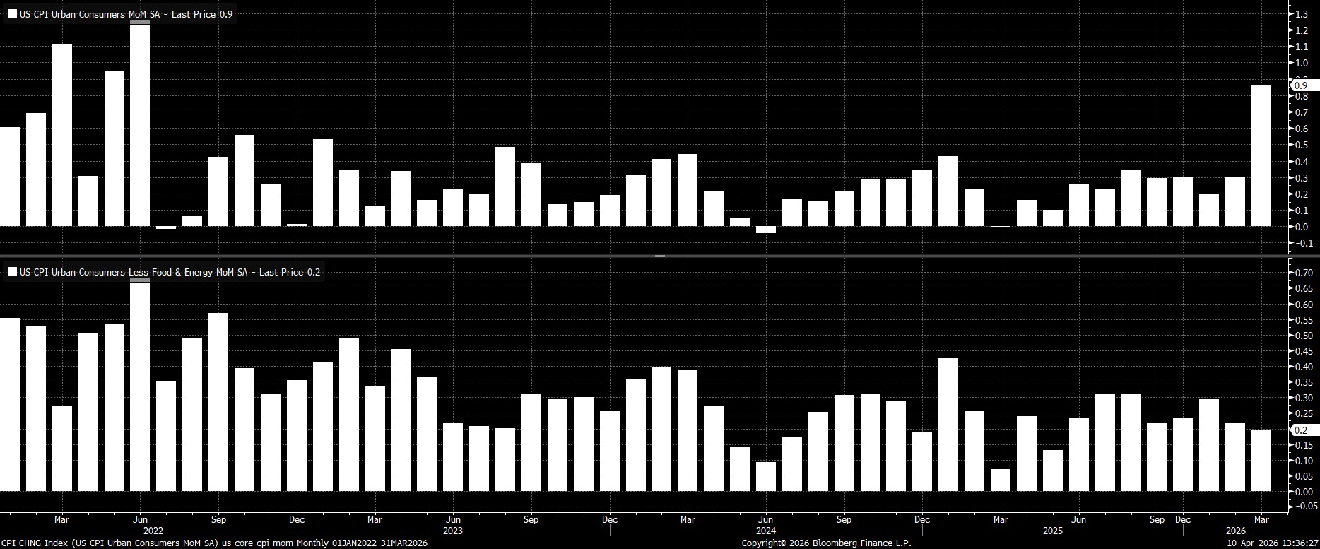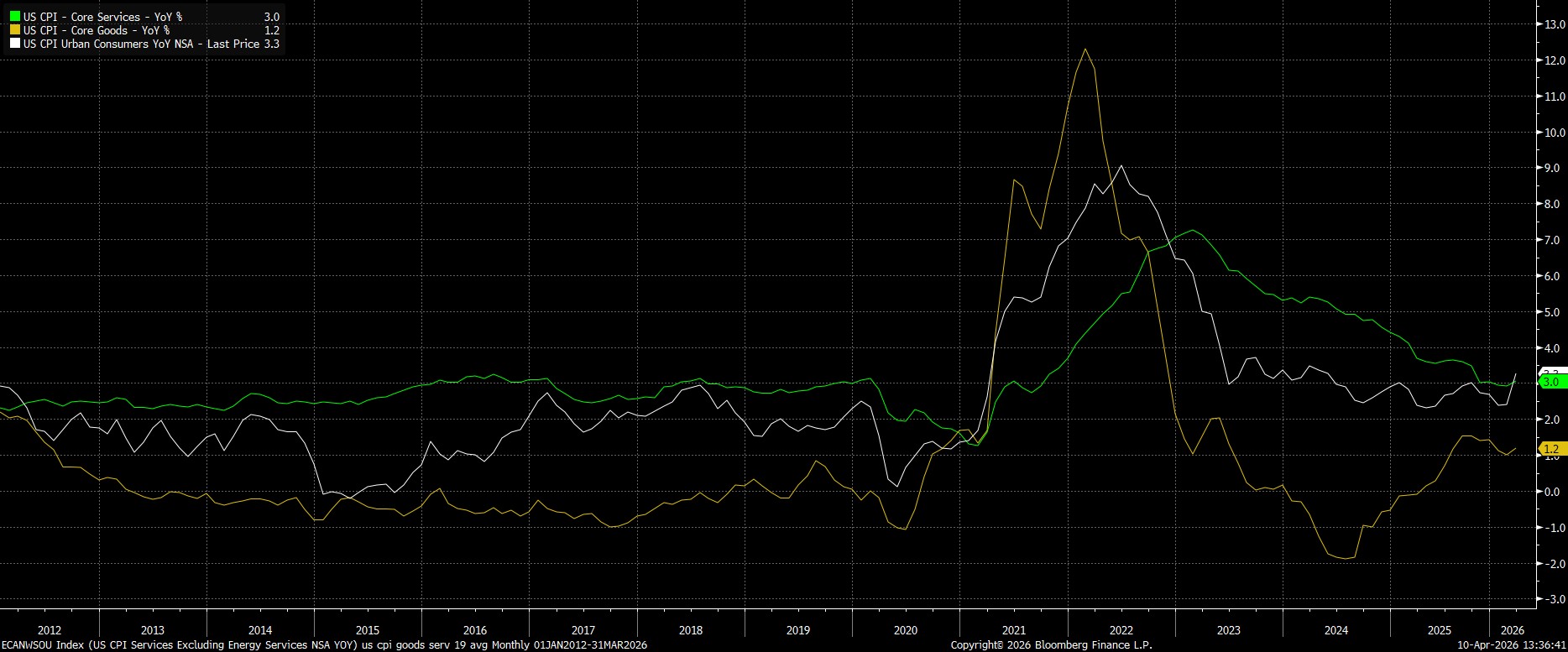 Headline CPI rose 3.3% YoY last month, a touch below consensus estimates for a 3.4% YoY increase, and the fastest annual rate of inflation since May 2024. Of course, almost all of that jump came as a result of higher energy prices, stemming from the interruption of normal commodity flows due to conflict in the Middle East.