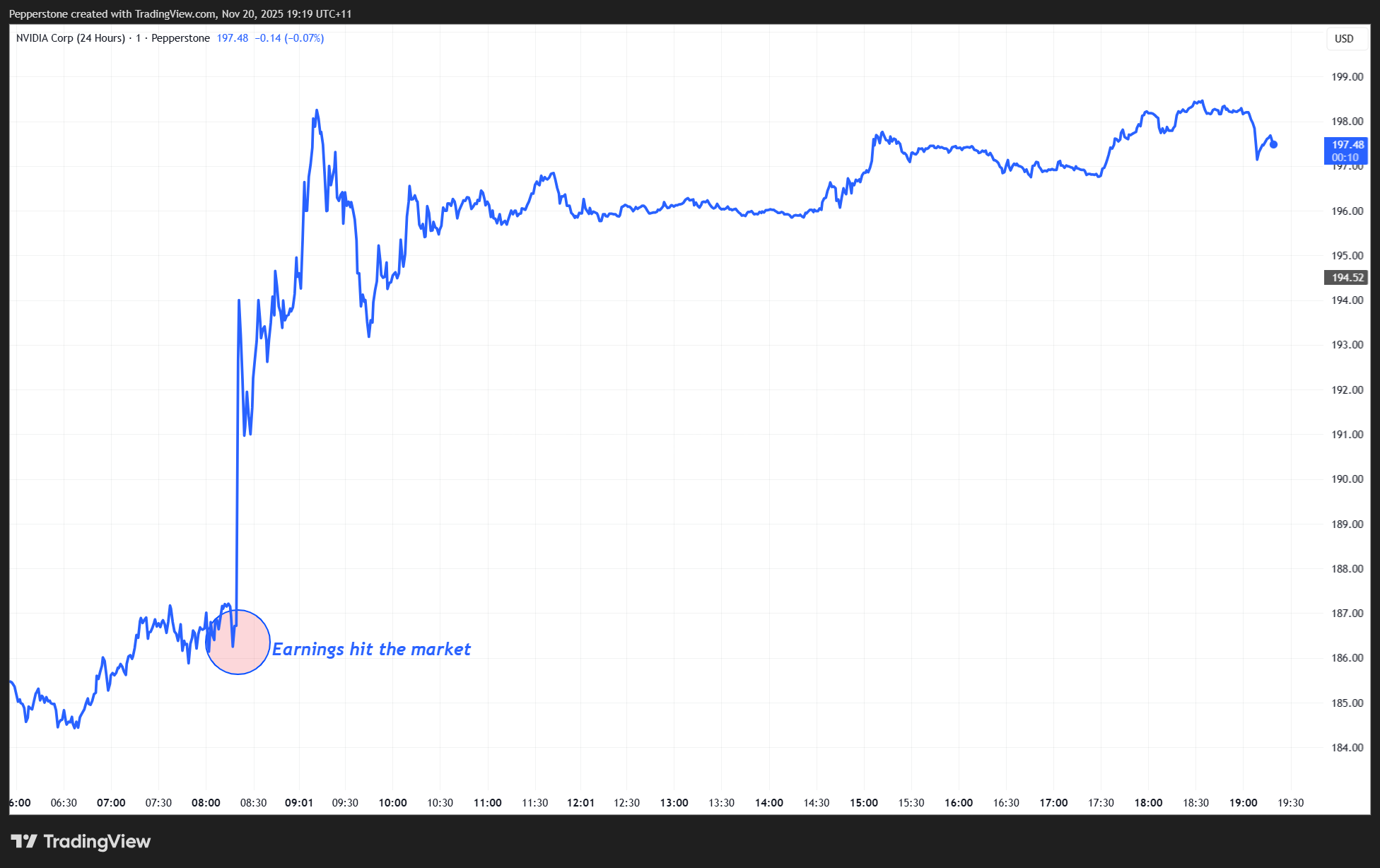 Nvidia 24-hour CFDs rallied to a session high of $198.53 (+6.2%) following the earnings release. The positive sentiment spread quickly:
