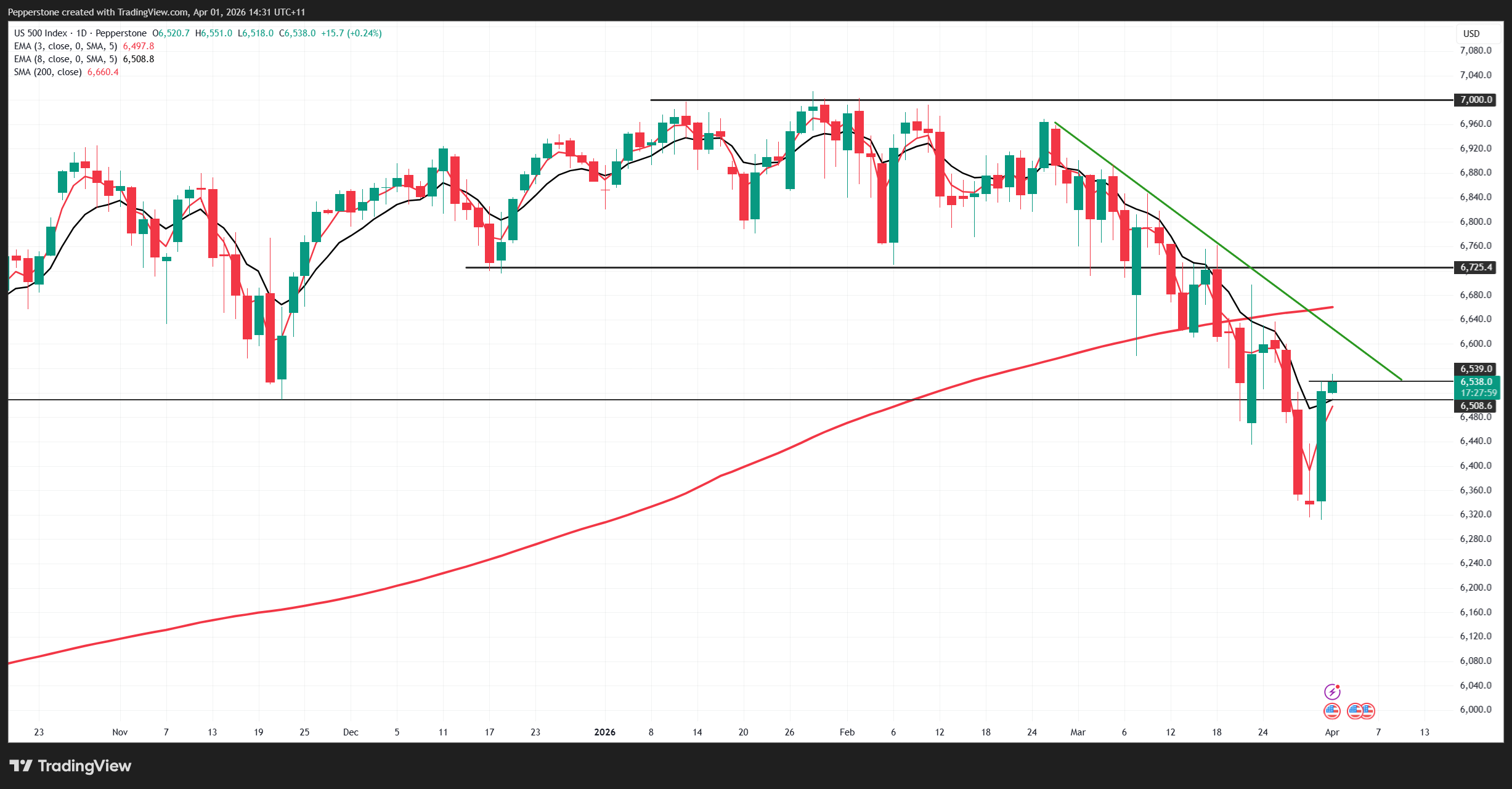 The key level now sits in the S&P 500 (US500):
