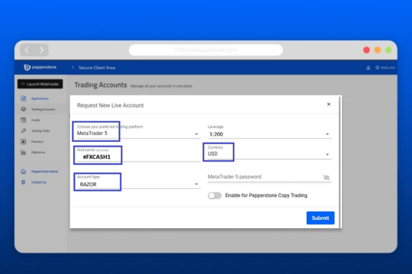 -Register via this landing page using the ‘Sign-up’ button above (please don’t sign up directly on Pepperstone’s website).