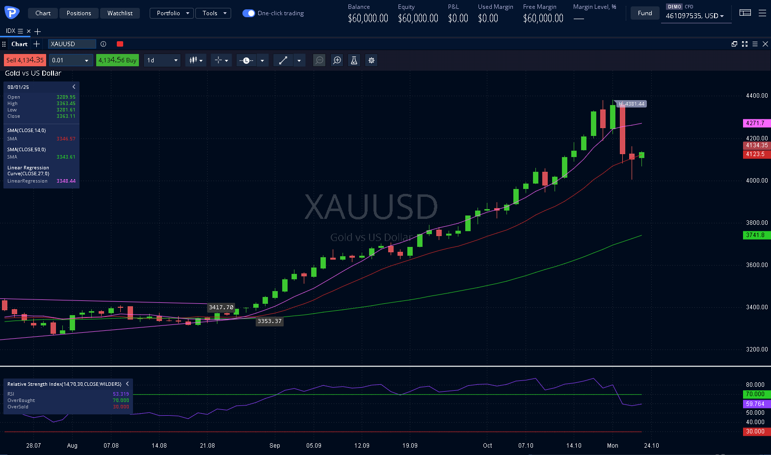 Questi sviluppi hanno innescato un rapido ritorno della domanda di safe-haven per l'oro. Gli analisti di Trading Economics prevedono che il metallo prezioso potrebbe tornare a scambiare a 4.300 dollari l'oncia entro la fine del quarto trimestre 2025 e raggiungere i 4.500 dollari entro 12 mesi. Il rialzo è sostenuto anche dalle aspettative di ulteriori tagli dei tassi da parte della Federal Reserve: i mercati scontano con una probabilità del 96,7% una riduzione di 25 punti base nella riunione del 29 ottobre, che porterebbe il tasso sui fondi federali nell'intervallo 3,75%-4,00%.